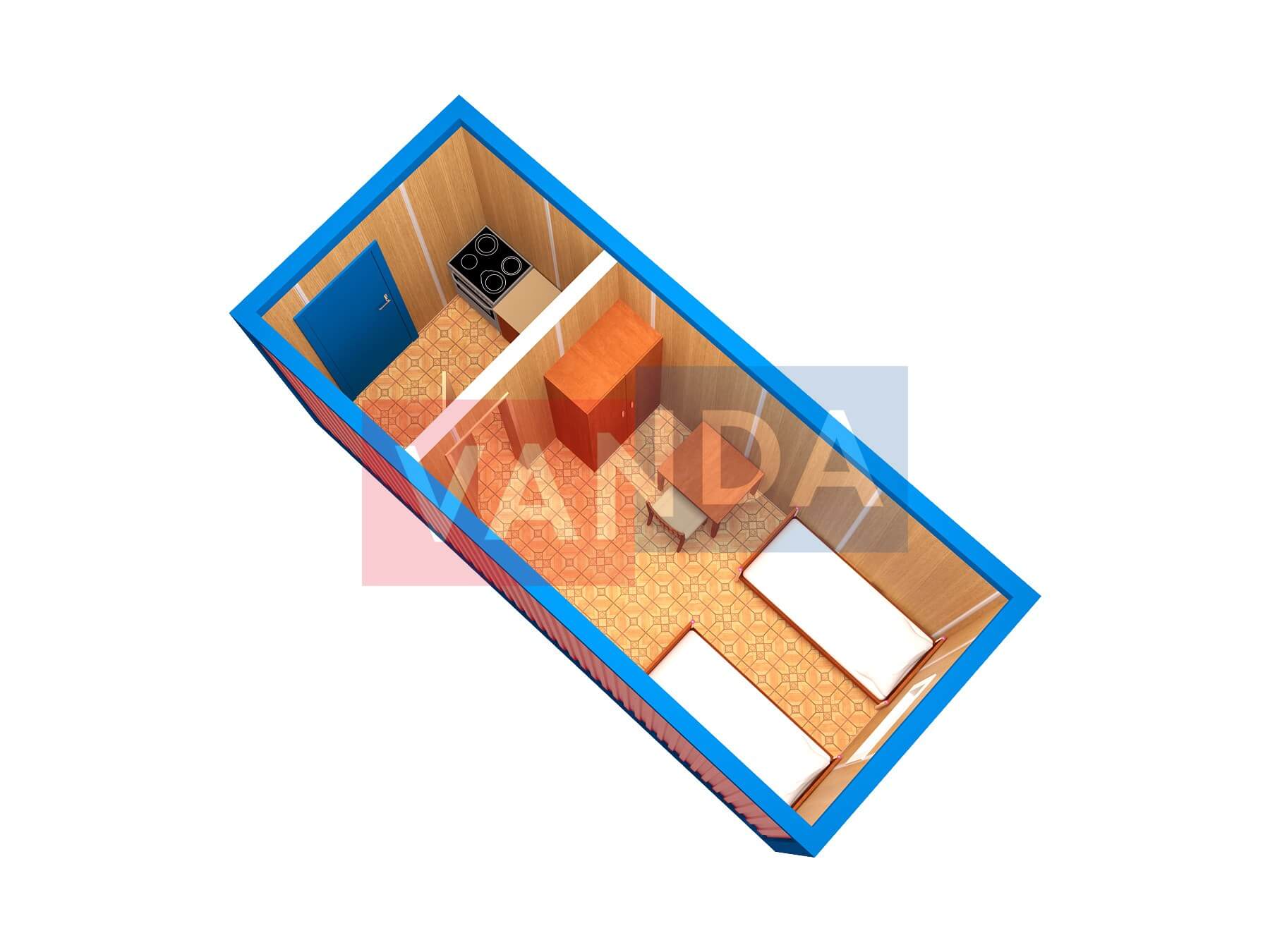 Металлическая бытовка с кухней в тамбуре 5,85 x 2,4 - Вагонка деревянная 5.85x2.4 14.04 Вагонка деревянная оцинкованный профлист 174 000 р. Уточняйте у менеджера