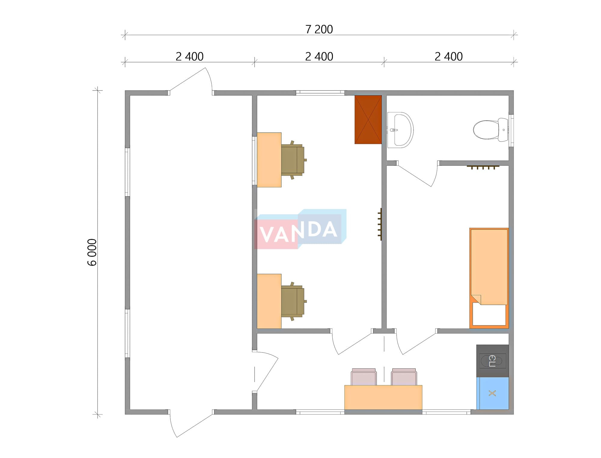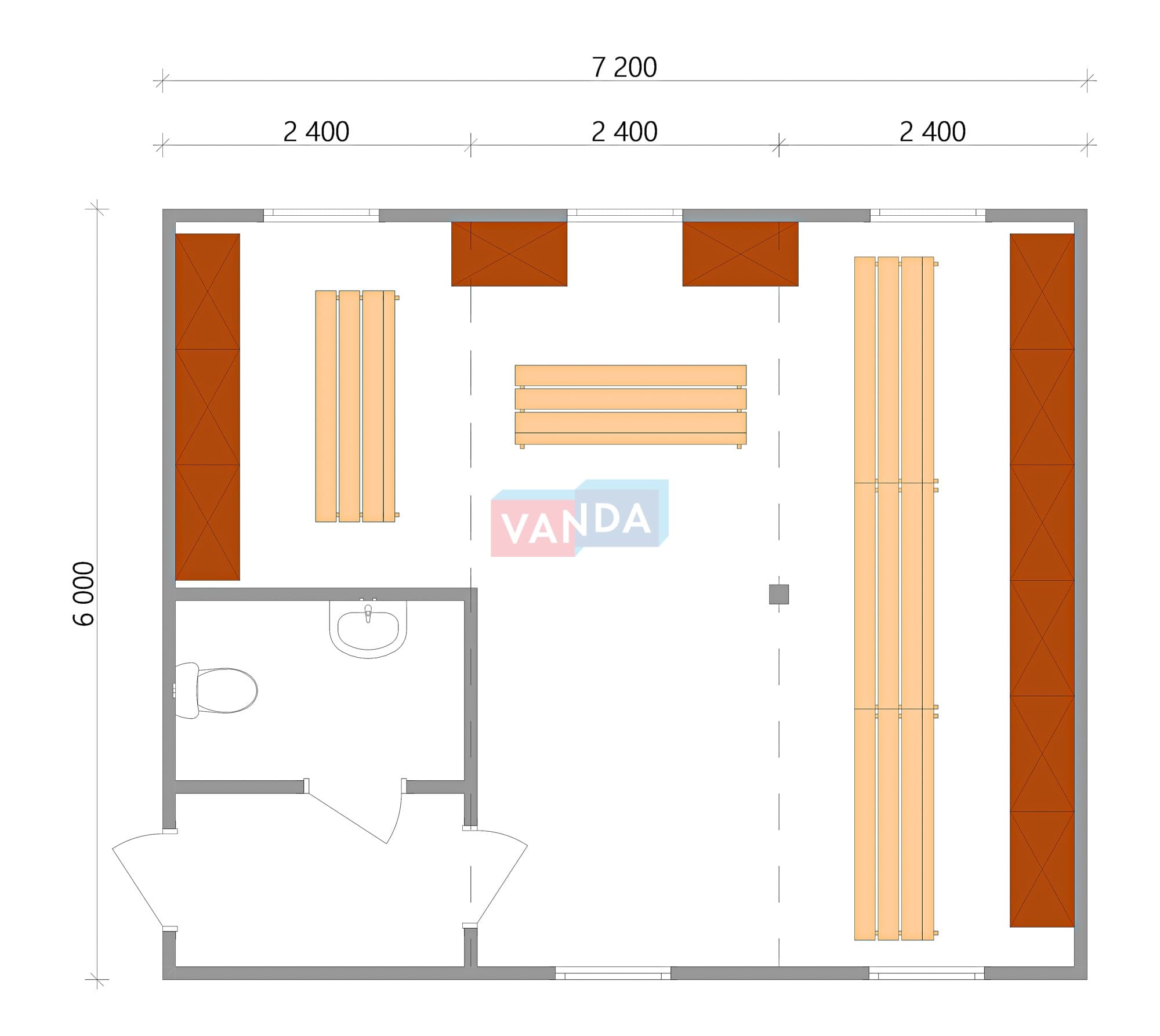 Модульная бытовка с плоской крышей 7.2x6.0 7.2x6.0 43.2 OSB 9 мм. Оцинкованный профлист 650 000 р. Уточняйте у менеджера