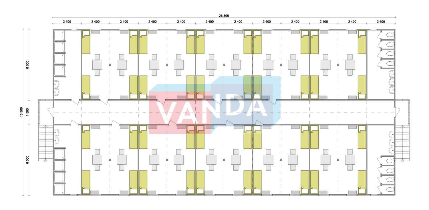 Проект вахтового посёлка 14.0х57,6 14x57.6 806.4 OSB 9 мм. Оцинкованный профлист 20 700 000 р. Уточняйте у менеджера