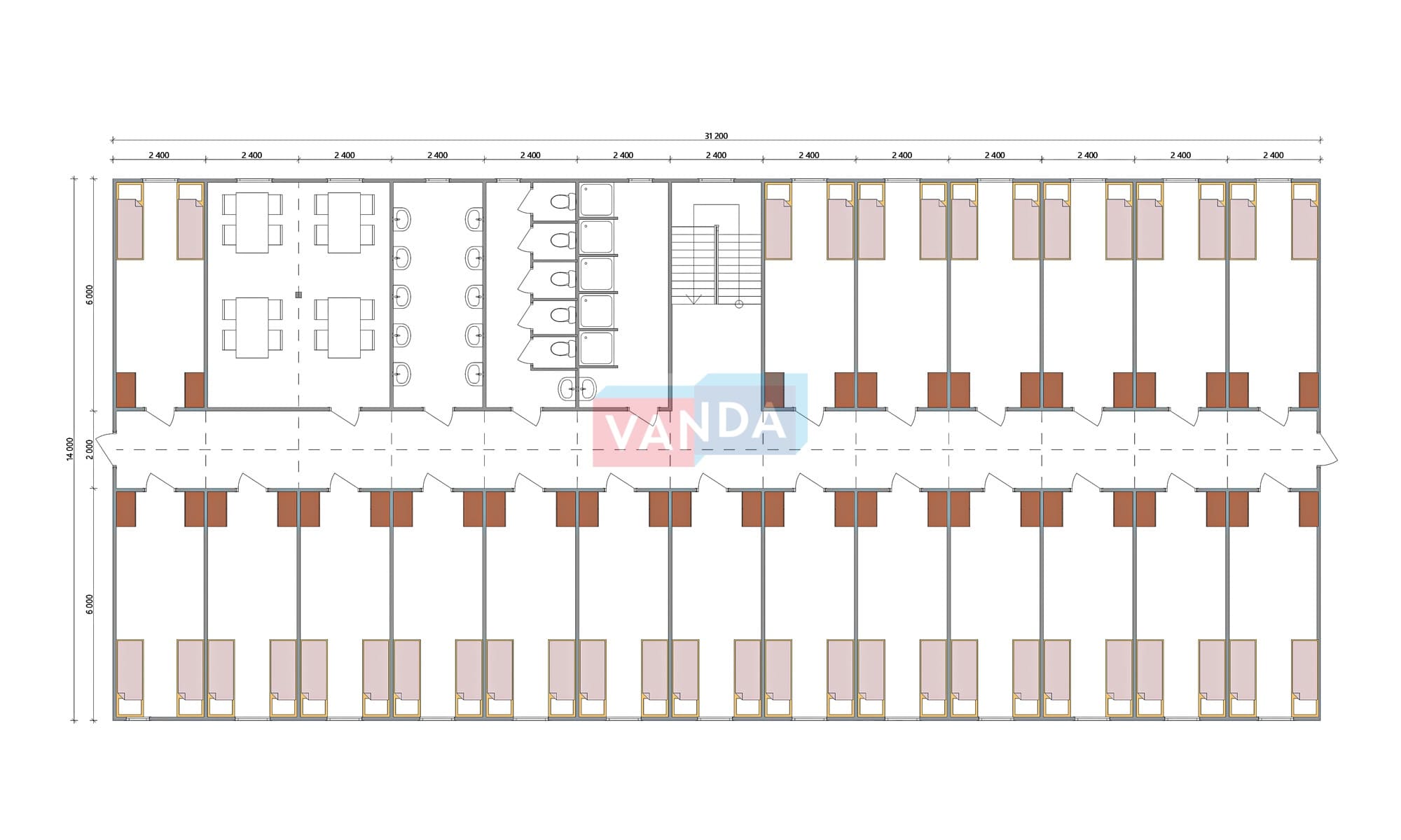Проект вахтового посёлка 14.0х31,2 14.0x31.2 873.6 OSB 9 мм. Оцинкованный профлист 20 810 000 р. Уточняйте у менеджера
