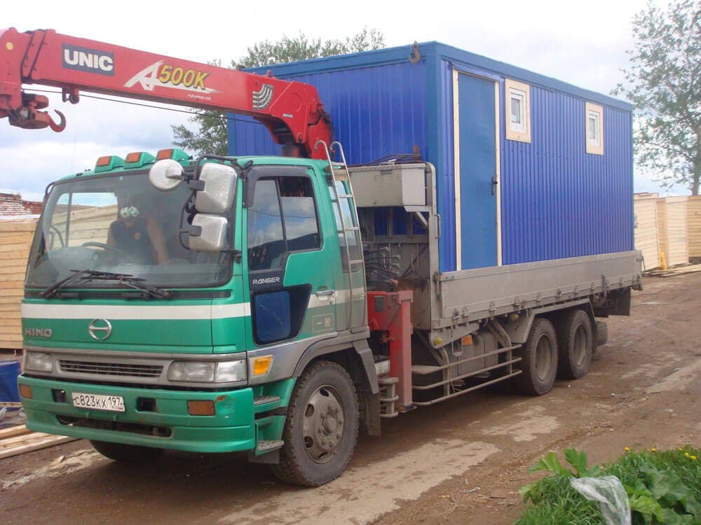 Перевозка строительных бытовок краном манипулятором имеет множество преимуществ по сравнению с другими способами доставки, поскольку отличается: